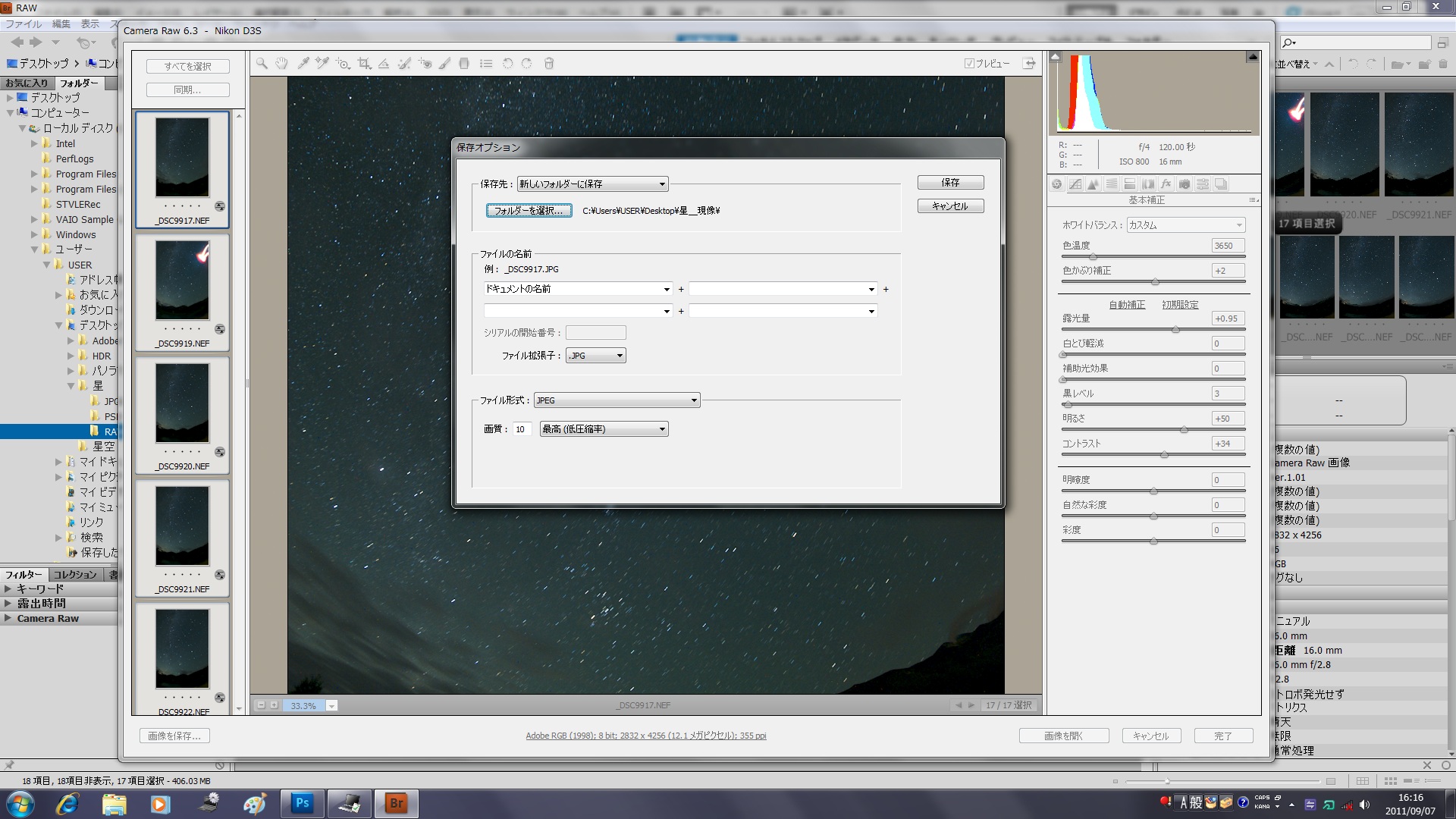 左下「画像を保存」で保存先の指定、ファイル名、ファイル形式(ここではJPGを選択)を決めて「保存」で現像が完了。